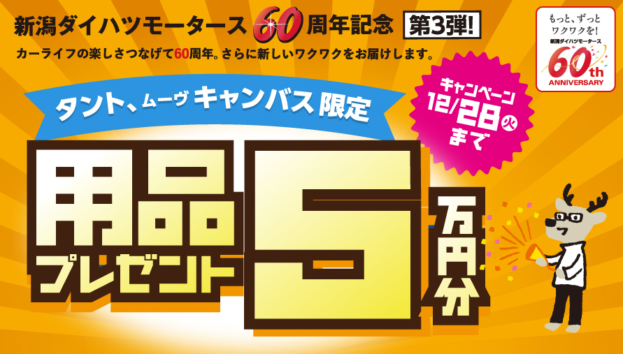 本日は、只今開催中のダイハツのお得なキャンペーンをご紹介致します゚.+:。∩(* >ω<)∩゚.+:。