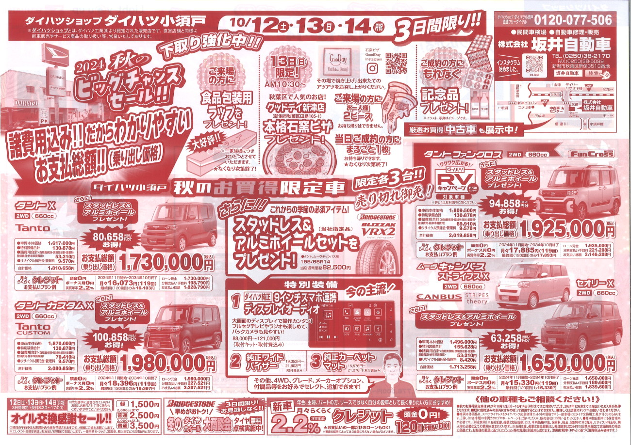 金曜の折込みにも入りますのでぜひお得情報をチェックしていただいて!今週末の秋の大展示会にお越しくださいませー!( ≧∀≦)ノ∠※。.:*:・'°☆